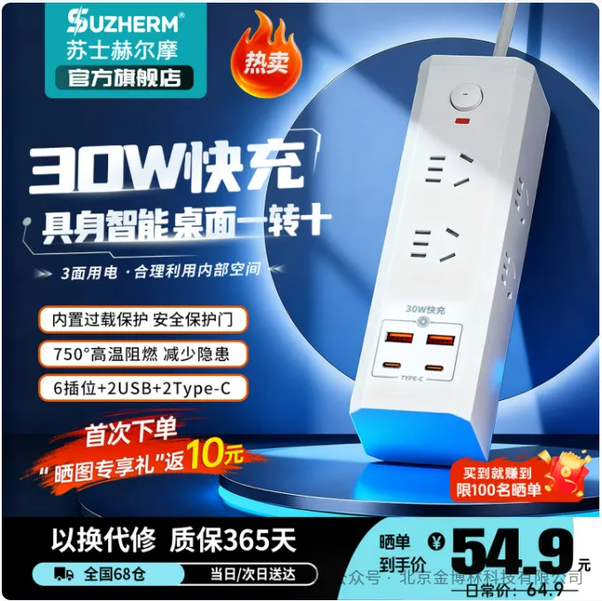 在智能家居设备日益普及的今天,充电效率与空间利用成为我们的核心痛点。苏士赫尔摩(SUZHERM)推出的智能快充插座系列,凭借创新设计和高性能表现,正成为桌面充电场景的标杆产品。该系列以“魔方”立式结构为核心,通过模块化功能集成,将传统插座升级为兼具实用性与美学的智能终端。